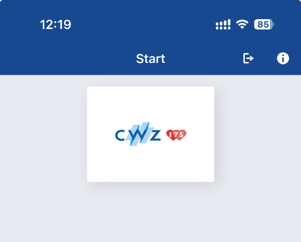 Na het koppelen en inloggen verschijnt het logo van MijnCWZ op het scherm. De app is nu klaar voor gebruik.