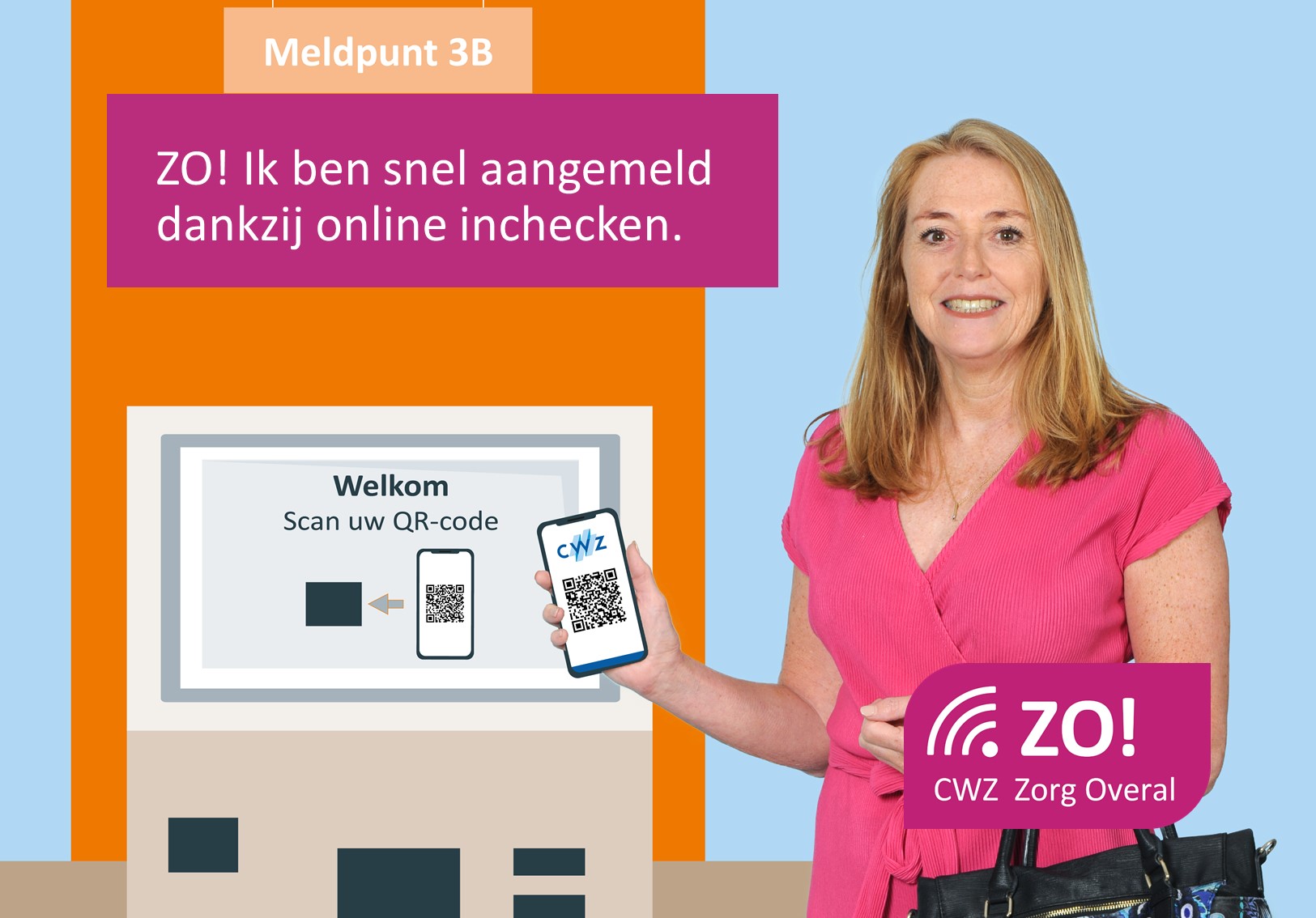 - De eerste keer dat u online incheckt, controleert u gegevens. Een volgende keer hoeft u minder stappen te doorlopen en gaat online inchecken nóg sneller. Komt u vaker in CWZ? Dan hoeft u maximaal elk half jaar uw gegevens opnieuw te controleren.