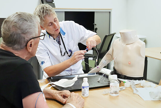 Afdeling Zelfzorg Thuis bestaat bijna anderhalf jaar en heeft in die tijd al 1200 patiënten geschoold. Patiënten die zelf eenvoudige zorghandelingen kunnen verrichten zijn zelfstandiger, hebben meer vrijheid en meer regie op hun leven. ‘We zien dat het werkt’, zegt afdelingshoofd Bas Donderwinkel. ‘Onderzoek van studenten aan de HAN laat zien dat deze patiënten vaardiger zijn in het uitvoeren van de handelingen, ze vertrouwen hebben dat ze zich goed kunnen redden en minder afhankelijk zijn van thuiszorg of mantelzorgers. De patiënten uit het onderzoek vinden de sfeer prettig, de uitleg helder en er is veel ruimte voor het stellen van vragen.’ Belangrijk is goede samenwerking met de wijkverpleging. Daarom werken zes organisaties voor wijkverpleging samen als één herkenbaar en aanspreekbaar team wijkverpleging binnen Zorg in mijn wijk, een initiatief van ZZG zorggroep.